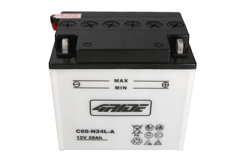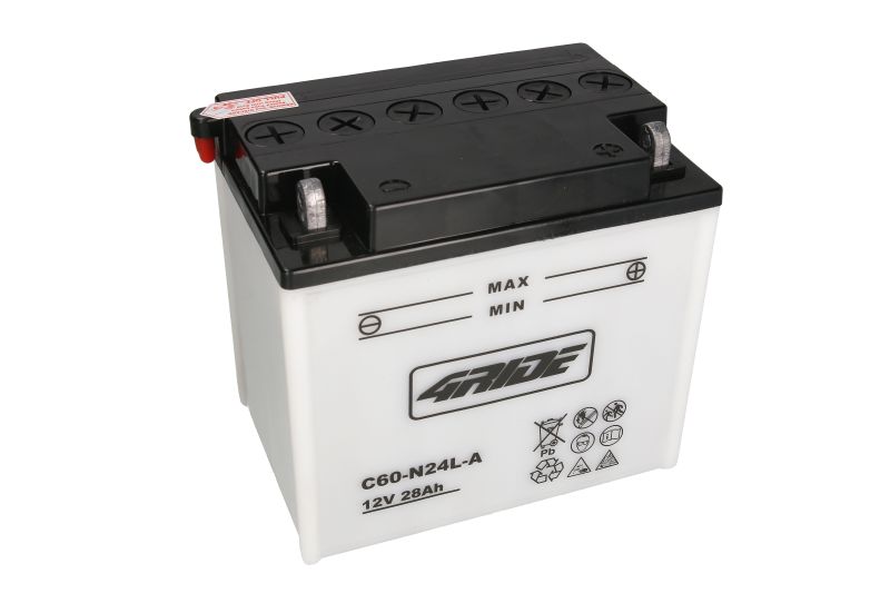 Η 4RIDE C60N24L-A είναι μπαταρία μοτοσυκλέτας 12V 28Ah με ισχυρό ρεύμα εκκίνησης 300A CCA για αξιόπιστη εκκίνηση κινητήρα.