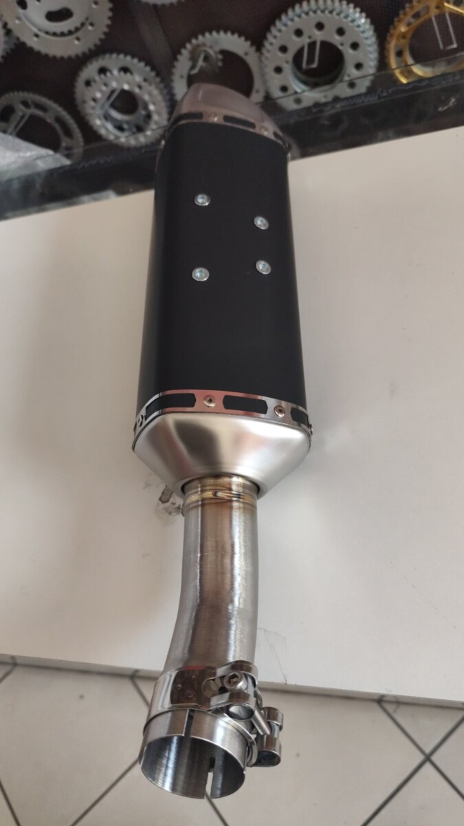 Το σώμα της εξάτμισης συνδυάζεται με λαιμό εξάτμισης από ανοξείδωτο ατσάλι υψηλής ποιότητας, προσφέροντας χαμηλότερο βάρος σε σχέση με το εργοστασιακό σύστημα και καλύτερη ροή καυσαερίων. Το αποτέλεσμα είναι πιο άμεση απόκριση στο γκάζι και βελτιωμένη λειτουργία του κινητήρα στις μεσαίες και υψηλές στροφές.