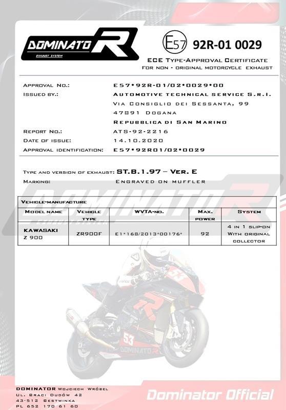 Dominator Εξάτμιση Τελικό GP Black S.Steel Kawasaki Z 900 2020 – 2024 Με Προδιαγραφές Θορύβου(Περιλαμβάνει Σιγαστήρα)