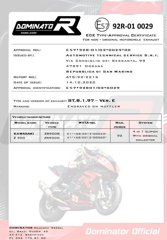 Dominator Εξάτμιση Τελικό GP S.Steel Kawasaki Z 900 2017 – 2019 Με Προδιαγραφές Θορύβου(Περιλαμβάνει Σιγαστήρα)