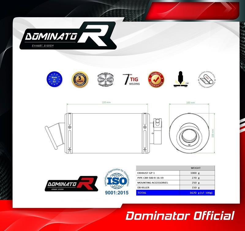 Dominator Εξάτμιση Τελικό GP1 S.Steel Honda CBR 500 R 2016 – 2019 Με Σιγαστήρα