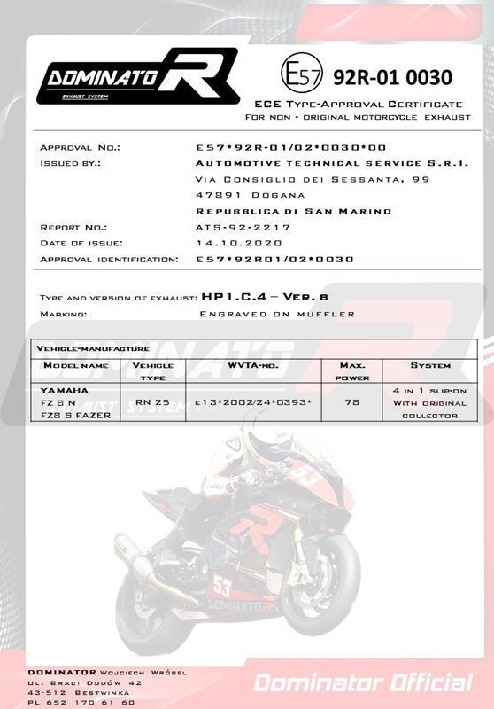 🇵🇱 Εγκεκριμένη Slip-on Σπορ Εξάτμιση DOMINATOR με Carbon End Cap για Yamaha FZ8 N / FZ8 S FAZER (RN25)
