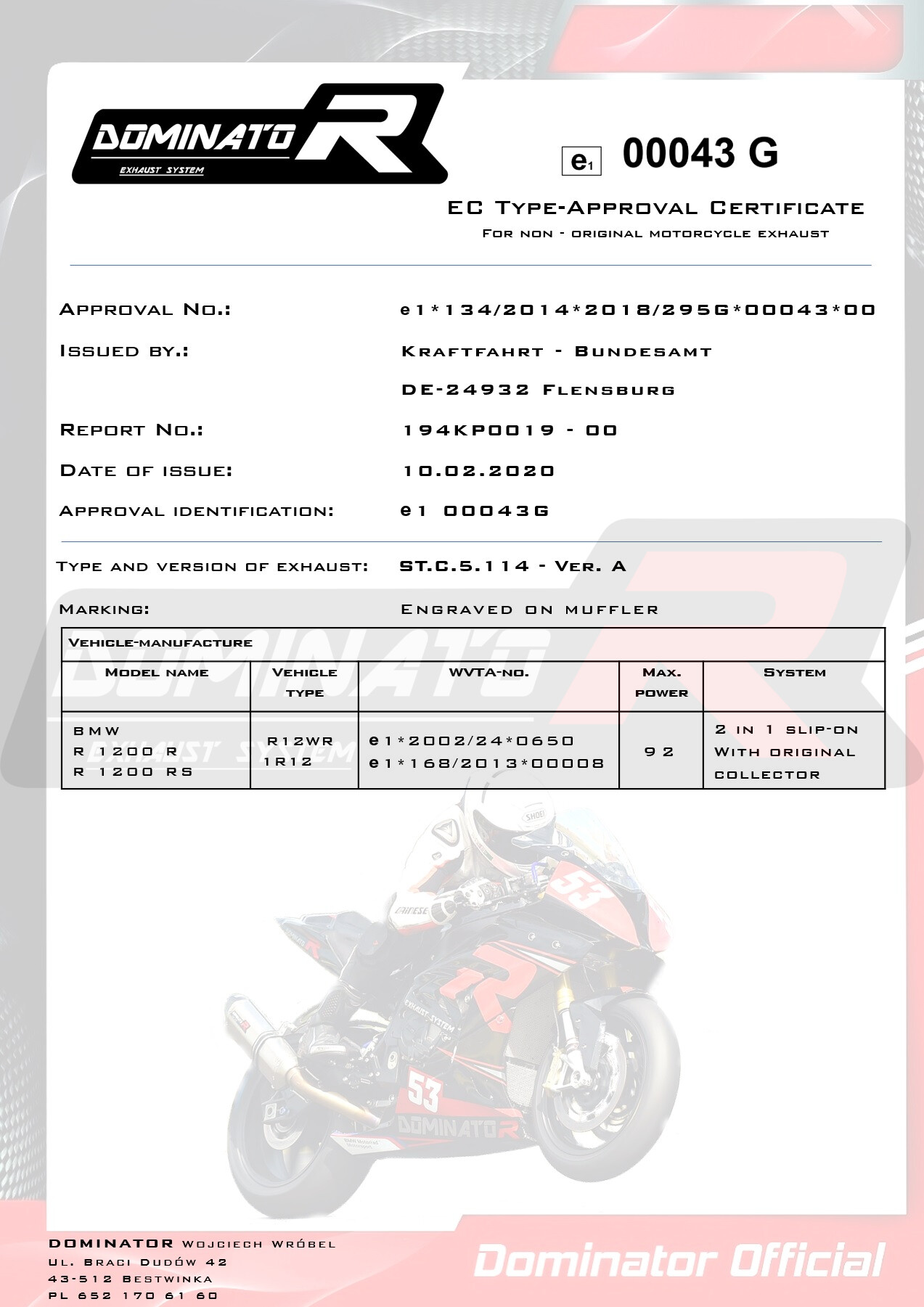 Dominator Εξάτμιση Τελικό Round S.Steel BMW R 1200 RS 2015 – 2018 Με Προδιαγραφές Θορύβου(Περιλαμβάνει Σιγαστήρα)