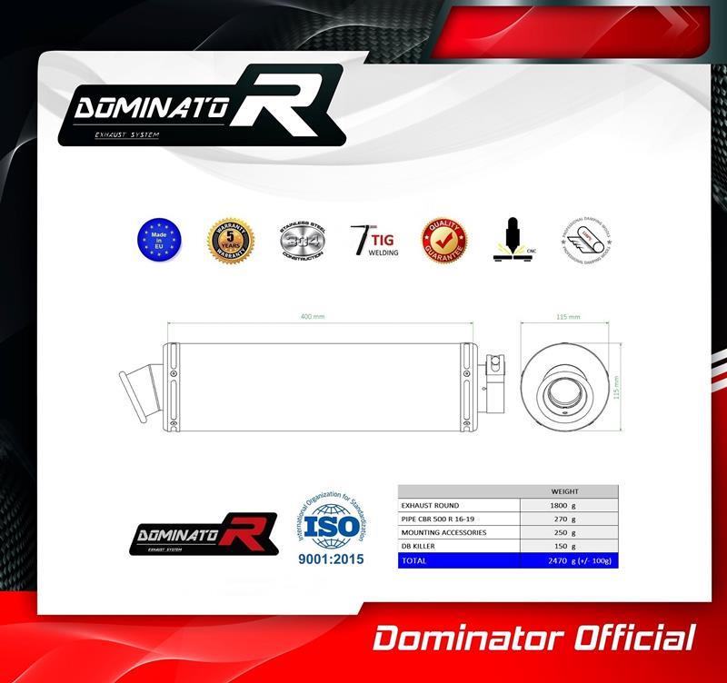Dominator Εξάτμιση Τελικό Round S.Steel Honda CBR 500 R 2016 – 2019 Με Σιγαστήρα