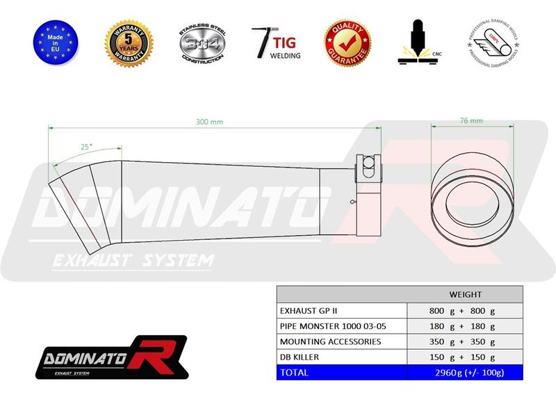 Dominator Εξατμίσεις Διπλά Τελικά GP2 S.Steel Ducati Monster 1000 2003 – 2005 Με Σιγαστήρες