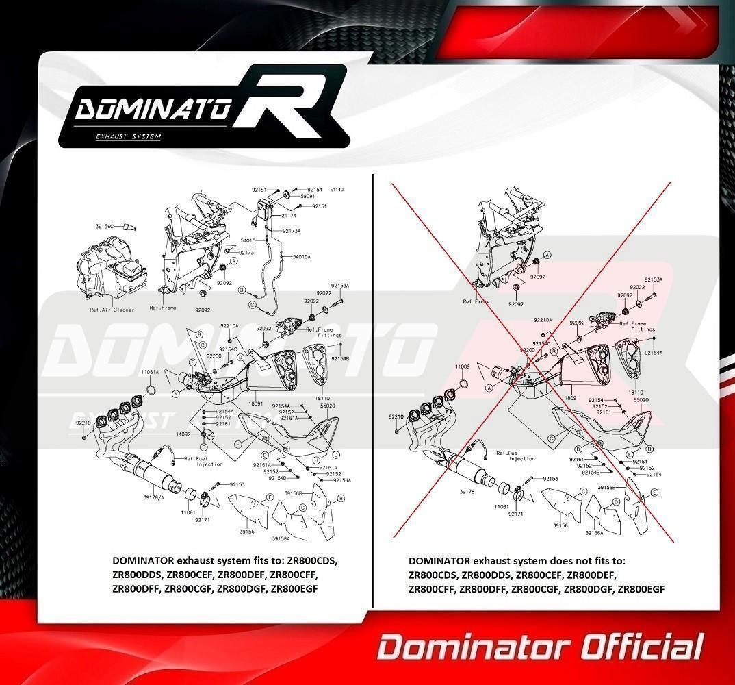 Dominator Ολόσωμη Εξάτμιση HP8 Black S.Steel/Carbon End Kawasaki Z 800 2013 – 2016 Με Σιγαστήρα