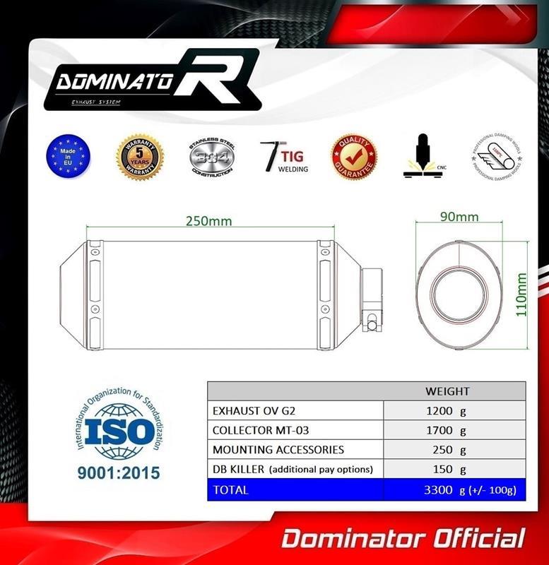 Ολόσωμη εξάτμιση (Full System) DOMINATOR OV για Yamaha MT-03 (2016-2024)