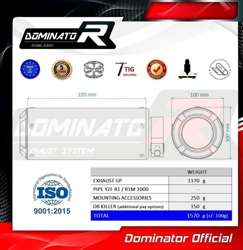 Ομολογκαρισμένη Εξάτμιση DOMINATOR Slip-on για YAMAHA YZF R1 1000 – Dominator Εξάτμιση Τελικό GP Black S.Steel Yamaha R1 2017 – 2019 Με Προδιαγραφές Θορύβου(Περιέχει Σιγαστήρα)