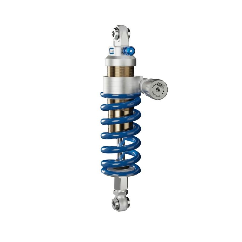 🔹 Υδραυλική προφόρτιση ελατηρίου, που αντικαθιστά τον παραδοσιακό μηχανικό ρυθμιστή. Μέσω ενός εύχρηστου περιστροφικού χειριστηρίου (στο πλαίσιο ή πάνω στο αμορτισέρ), ο αναβάτης μπορεί να προσαρμόσει άμεσα τη ρύθμιση του ελατηρίου — ιδανικό για τουριστικές μοτοσυκλέτες με εναλλασσόμενο φορτίο ή για αγωνιστικές συνθήκες με γρήγορες αλλαγές setup.
