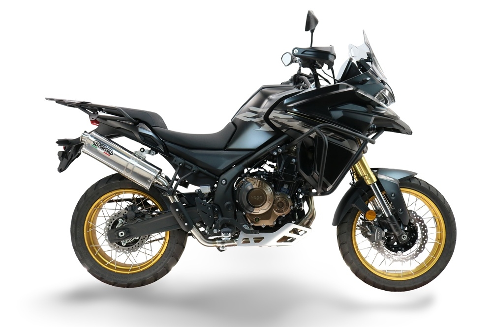Η εξάτμιση GPR Trioval για Voge 625DSX (2024–2025) προσφέρει κλασική adventure αισθητική, ποιοτική ανοξείδωτη κατασκευή και γεμάτο ήχο, αποτελώντας ιδανική επιλογή αναβάθμισης για τη μεσαία on-off της Voge. Ο τελικός Trioval κατασκευάζεται από ανοξείδωτο ατσάλι 304 με χειροποίητο γυαλισμένο φινίρισμα και χαρακτηριστική οβάλ-σταγόνα διατομή 100×130 mm, που ταιριάζει αρμονικά στον adventure-touring χαρακτήρα της 625DSX.