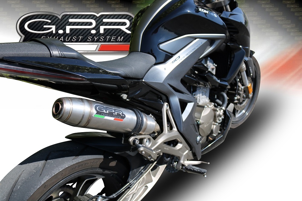Ολόσωμη εξάτμιση GPR Deeptone Inox για Zontes ZT 310 R (2018-2020) με λαιμό εξάτμισης. Κατασκευή Inox 304 σατινέ, χωρίς καταλύτη. Plug-and-play εγκατάσταση και εγγύηση GPR 2 ετών.