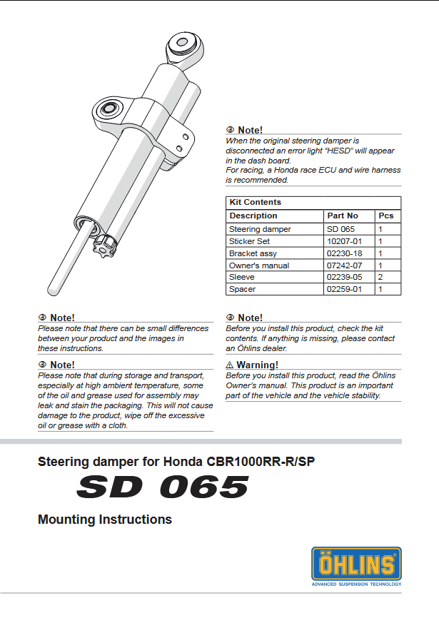 Το Öhlins Steering Damper Road & Track αποτελεί αναπόσπαστο κομμάτι ενός ολοκληρωμένου πακέτου απόδοσης για τη Honda CBR 1000 RR και CBR 1000 RR SP (2020–2023). Σχεδιασμένο με αγωνιστική φιλοσοφία και βασισμένο στη μακρόχρονη εμπειρία της Öhlins, προσφέρει αυξημένη σταθερότητα, ακρίβεια και κορυφαία αίσθηση στο τιμόνι, τόσο σε δυναμική οδήγηση δρόμου όσο και σε χρήση πίστας.