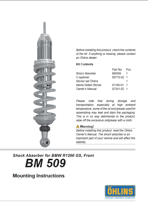 Ohlins Αμορτισέρ Εμπρός BMW R 1200 GS/Adventure 2004 – 2012 Short/Κοντή Εκδοση