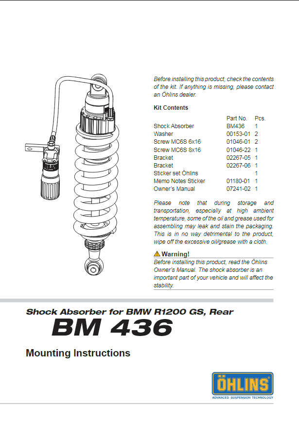 Η BMW R 1200 GS χρησιμοποιεί ένα (1) πίσω αμορτισέρ – το προϊόν αφορά το πίσω.