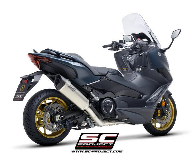 Ολόσωμη εξάτμιση SC-Project για Yamaha TMAX 560 (2022-2024) με τελικό SC1-R titanium. Σύστημα 2-1 από ανοξείδωτο ατσάλι, χαμηλό βάρος και βελτιωμένη απόδοση. Εύκολη εγκατάσταση plug & play.