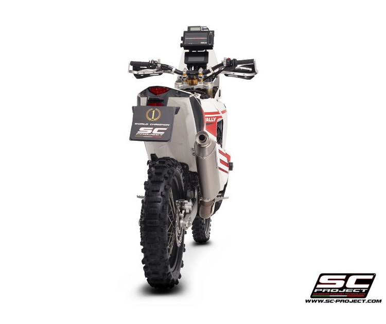 Η κατασκευή από titanium στο σώμα, στο τελικό καπάκι και στο σημείο εισαγωγής εξασφαλίζει υψηλή αντοχή, χαμηλό βάρος και άριστη θερμική συμπεριφορά. Σε σχέση με την εργοστασιακή εξάτμιση, το σύστημα της SC-Project επιτυγχάνει μείωση βάρους κατά περίπου 2,1 κιλά, κάτι που βελτιώνει την ευελιξία και τον χειρισμό της μοτοσυκλέτας τόσο σε δρόμο όσο και σε απαιτητικές εκτός δρόμου διαδρομές.
